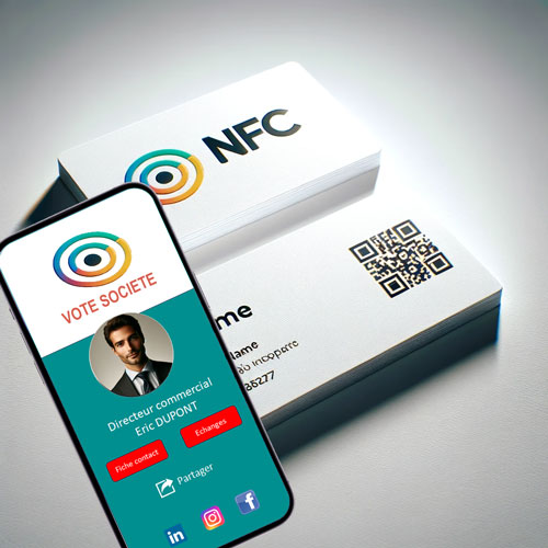 Les QR Codes sont imprimés sur une carte NFC ayant la même fonction que le QR Code, avec sur le recto, le logo de Bastide et sur le verso le QR Code et le nom prénom du contact.